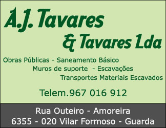 A J Tavares e Tavares Lda Construção / PortalGeraldoConselho Ver todos... Detalhes do contacto Rua Outeiro - AmoreiraGuarda,6355-020 - VILAR FORMOSO 967 016 912 Facebook Twitter Google+
