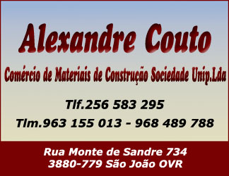 Alexandre Couto Comércio de Materiais de Construção Sociedade Unip.Lda Comércio / PortalGeraldoConselho Ver todos... Detalhes do contacto Rua Monte de Sandre 734Aveiro,3880-779 - SÃO JOÃO OVR 256 583 295 Telemóvel 963 155 013 Fax 256 583 295 Facebook Twitter Google+