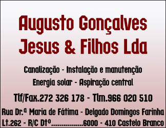 Augusto Gonçalves Jesus e Filhos Lda Serviços / PortalGeraldoConselho Ver todos... Detalhes do contacto Rua Dr.ª Maria de Fátima Delgado Domingos Farinha Lt. 262 R/C - dT.ºCastelo Branco,6000-410 - CASTELO BRANCO 272 326 178 Facebook Twitter Google+