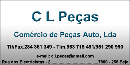 Rua dos electricistas - 2Beja,7800-256 - BEJA 284 361 349 Telemóvel 963 715 491 Fax 284 361 349 c.l.pecas@gmail.com