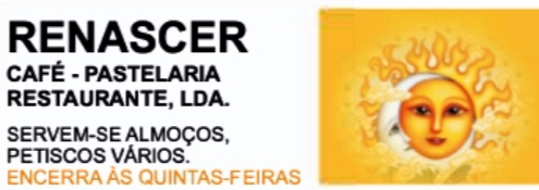 Café - Pastelaria Restaurante Renascer Restauração / PortalGeraldoConselho Ver todos... Detalhes do contacto Alameda 25 de Abril, 9 - FSetúbal,2855-211 Miratejo 211814780 Tlm: 968135206 Facebook Twitter Google+