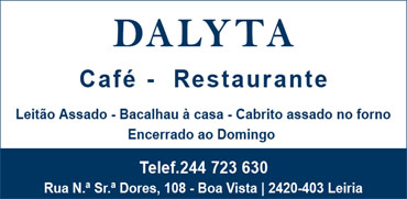 Café Restaurante Dalyta Restauração / PortalGeraldoConselho Ver todos... Detalhes do contacto Rua N.ª Sr.ª Dores, 108 - Boa VistaLeiria,2420-403 - LEIRIA 244 723 630 Facebook Twitter Google+