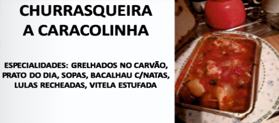 Churrasqueira A Caracolinha Restauração / PortalGeraldoConselho Ver todos... Detalhes do contacto Largo Caracolinha, 2Faro,8800-310 Tavira 281381069 Facebook Twitter Google+
