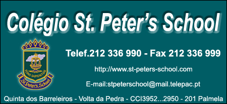 Colégio St. Peter’s School Educação / PortalGeraldoConselho Ver todos... Detalhes do contacto Quinta dos Barreleiros - Volta da Pedra - CCI3952Setúbal,2950 - 201 - PALMELA 212 336 990 stpeterschool@mail.telepac.pt http://www.st-peters-school.com Facebook Twitter Google+