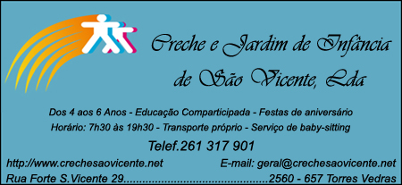 Creche e Jardim de Infância de São Vicente, Lda Educação / PortalGeraldoConselho Ver todos... Detalhes do contacto Rua Forte S.Vicente 29Lisboa,2560-657 - TORRES VEDRAS 261 317 901 geral@crechesaovicente.net Facebook Twitter Google+