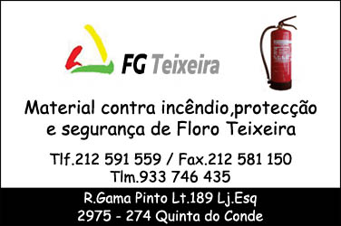 FG Teixeira-Comércio de Material Contra Incêndio Comércio / PortalGeraldoConselho Ver todos... Detalhes do contacto R Gama Pinto Lote 189-lj EsqSetúbal,2975-274 - QUINTA DO CONDE 212 591 559 Telemóvel 933 746 435 Fax 212 581 150 Facebook Twitter Google+