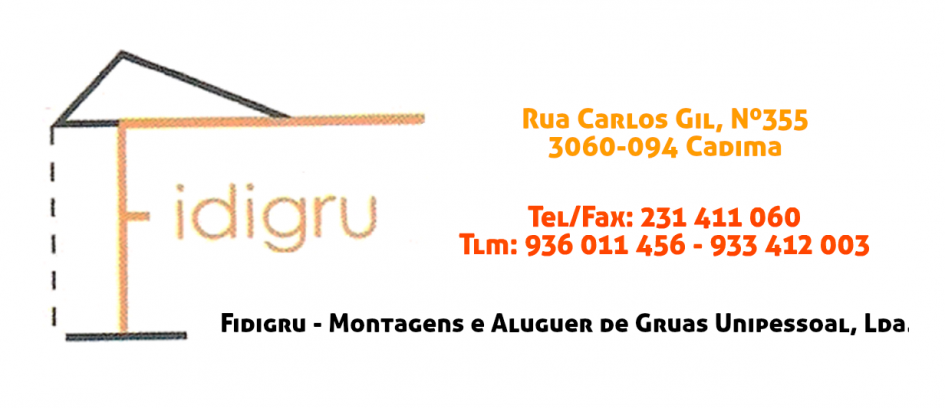 Fidigru - Montagens e Aluguer de Gruas Unipessoal, Lda. Construção / PortalGeraldoConselho Ver todos... Detalhes do contacto Rua Carlos Gil, Nº 355Coimbra,3060-094 936 011 456 - 933 412 003 Facebook Twitter Google+