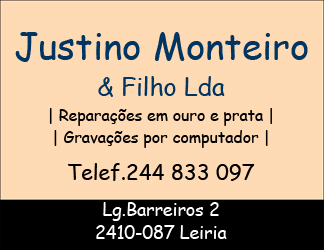 Justino Monteiro & Filho, Lda. Serviços / PortalGeraldoConselho Ver todos... Detalhes do contacto Lg. Barreiros 2Leiria,2410-087 - LEIRIA 244 833 097 Facebook Twitter Google+