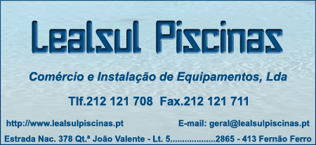 Lealsul Piscinas - Comércio e Instalação de Equipamentos, Lda. Comércio / PortalGeraldoConselho Ver todos... Detalhes do contacto E.N. 378 Qt João Valente - Lt 5Setúbal,2865-060 - FERNÃO FERRO 212 121 708 Facebook Twitter Google+
