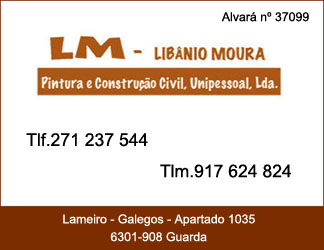 Libânio Moura Pintura e Construção Civil Unipessoal Lda Construção / PortalGeraldoConselho Ver todos... Detalhes do contacto Lameiro - Galegos - Apartado 1035Guarda,6301-908 271 237 544 Telemóvel 917 624 824 Facebook Twitter Google+