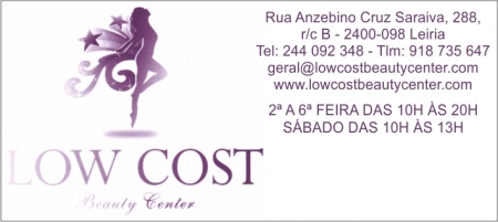 LowCost Beauty Center Beleza e Bem Estar / PortalGeraldoConselho Ver todos... Detalhes do contacto Rua Anzebino Cruz Saraiva nº 288 r/c BLeiria,2400-098 Leiria 244 092 348 TLM: 918 735 647 geral@lowcostbeautycenter.com Facebook Twitter Google+