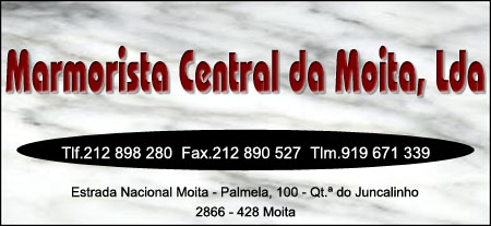 Marmorista Central da Moita, Lda Construção / PortalGeraldoConselho Ver todos... Detalhes do contacto Estrada Nacional Moita - Palmela, 100 - Qt.ª do JuncalinhoSetúbal,2866 -428 - MOITA 212 898 280 Telemóvel 919 671 339 Fax 212 890 527 Facebook Twitter Google+