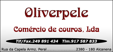 Oliverpele - Comércio de Couros, Lda Comércio / PortalGeraldoConselho Ver todos... Detalhes do contacto R. da Capela Armz Peral Santarem,2380-180 - ALCANENA 249 891 434 Telemóvel 917 587 833 Fax 249 891 434 Facebook Twitter Google+