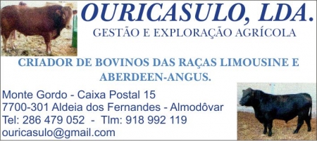 Monte Gordo - Caixa Postal 15Beja,7700-301 Almodovar : 286 479 052 TLM: 918 992 119 ouricasulo@gmail.com