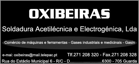 Oxibeiras Soldadura Acetilénica e Electrogénica, Lda Comércio / PortalGeraldoConselho Ver todos... Detalhes do contacto Rua do Estádio Municipal 6 R/C - D Guarda,6300-705 - GUARDA 271 208 320 oxibeiras@mail.telepac.pt Facebook Twitter Google+