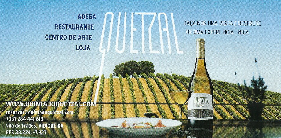Quinta do Quetzal - Adega - Restaurante Restauração / PortalGeraldoConselho Ver todos... Detalhes do contacto Estrada das Sesmarias, Quinta do QuetzalBeja,7960-453 Vila de Frades - Vidigueira 284441618 sales.marketing@quintadoquetzal.com Facebook Twitter Google+
