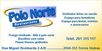 Restaurante Polo Norte Restauração / PortalGeraldoConselho Ver todos... Detalhes do contacto Rua Miguel Bombarda 2-A/BLisboa,2560-353 - TORRES VEDRAS 261 315 117 Facebook Twitter Google+