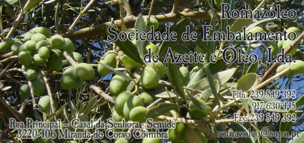 Romazóleo – Sociedade de Embalamento de Azeite e Óleo, Lda Indústria / PortalGeraldoConselho Ver todos... Detalhes do contacto Rua Principal – Casal da Senhora - SemideCoimbra,3220-406 239 549 392 | 917 630 445 Facebook Twitter Google+