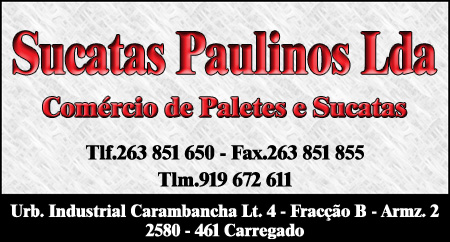 Sucatas Paulinos, Lda Comércio / PortalGeraldoConselho Ver todos... Detalhes do contacto Urbanização Industrial de Carambancha Lt 4 - Fracção B - Armz. 2 Lisboa,2580-461 - CARREGADO 263 851 650 Telemóvel 919 672 611 Fax 263 851 855 Facebook Twitter Google+
