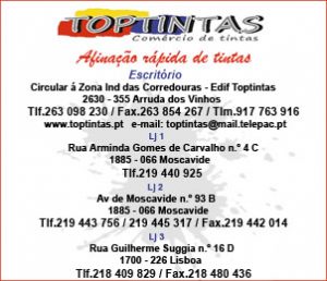 PortalGeraldoConselho Togs – Comércio de Uniformes, Lda PortalGeraldoConselho Comércio / Lisboa Tony Martins Arquitectos Projectos de Arquitectura PortalGeraldoConselho Serviços / Faro Top Relva PortalGeraldoConselho Agricultura e Pecuária / Porto Topcoatembal – Packaging e Tratamento de Plásticos, Lda. PortalGeraldoConselho Serviços / Leiria Topdomus – Construção e Gestão Imobiliária, Lda PortalGeraldoConselho Construção / Porto Toptintas – Comércio de Tintas, Lda PortalGeraldoConselho Comércio / Lisboa Toque Divinal – Gelataria Italiana PortalGeraldoConselho Comércio / Setúbal Torre Marco – Comércio de Tractores e Alfaias Agricultas, S.A PortalGeraldoConselho Agricultura e Pecuária / Porto TorreAlfer Administração de Condomínios, Unipessoal, Lda PortalGeraldoConselho Serviços / Aveiro Traço Certo Empreitadas Construção Civil, lda PortalGeraldoConselho Construção / Lisboa Page 230 of 238«1…228229230231232…238»